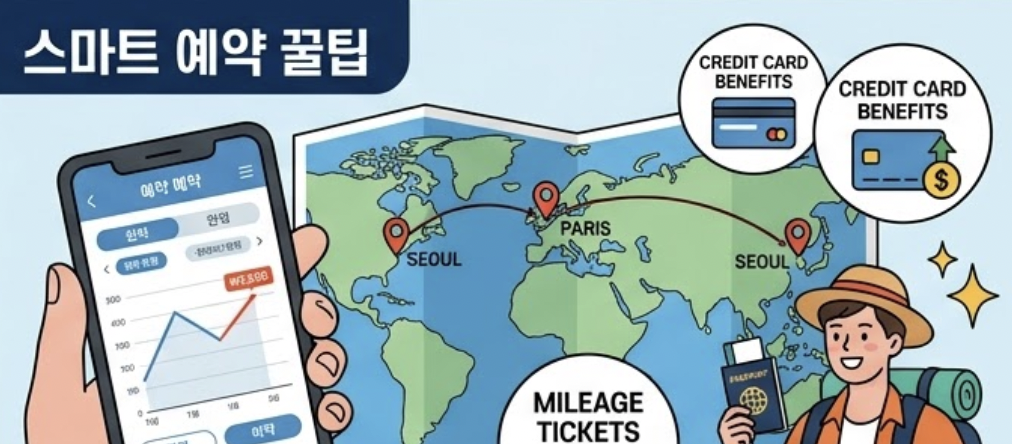 - 삼성카드, 신한카드, 현대카드 등 프리미엄 카드 사용 시 1년에 한 번 나오는 항공권 할인 바우처나 1+1 혜택을 확인하세요. 모르는 분들 많으시더라구요.